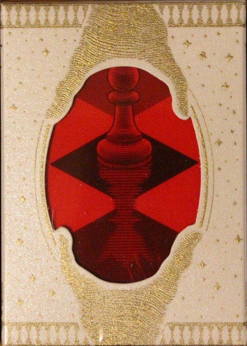 Inspired by the intensely curious works of Escher, this deck was meticulously designed and illustrated to create a reality-bending deck in the most sincerest form. Good illusions blur the lines between dual designs, trying to persuade you to see something not quite there. But great illusions solidify those lines to transform these designs into unmistakably new perspectives. Large windows blend the boundaries between cards and box. Each deck in this year’s collection contains a singular perspective that controls the “reality” of the designs inside it, creating a stunningly visual change to the actual cards themselves. Will you be of the King’s persuasion and see his crown ? Or will your deck be captured by the Queen revealing a completely DIFFERENT set of pieces in tow? Bring home the world’s first dual perspective changing deck and keep a piece of playing card history for your shelf. This deck truly takes the genre to a whole new level. A quick video shows the utterly stunning visual change side by side between one “reality” and another to truly appreciate the amazing results these small perspective boxes can do. The Queen Version has Red Gilding
