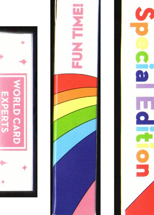 Includes Double Backed card (one side is the regular back design, the other has no colors in the rainbow)