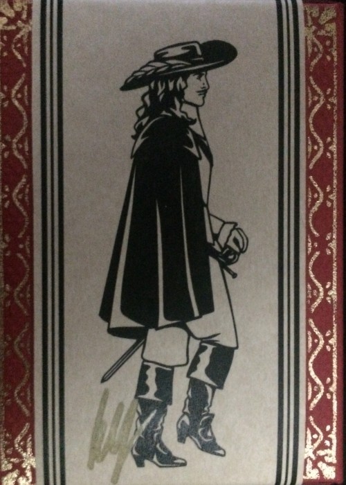 The Three Musketeers relates the adventures of the young musketeer aspirant d’Artagnan and his three musketeer friends Athos, Aramis and Porthos. Together they get involved in dangerous intrigues and affairs of state and court. This story of courage, honor, ambition, and treason takes place in the 17th century France and England. With The Three Musketeers Playing Cards I tried to incorporate meaningful details to make sure that the deck portrays a true image of both the story and the characters. The Royal Edition Features: – Custom side tuck made of special finely embossed cardstock, and it will be embossed, debossed and foiled. This tuck will also be numbered (with embossed numbers) and signed. The Three Musketeers Royal will be made of red cardstock and gold foil. – Custom metallic laser-cut bookmark, card shaped, featuring the AoS of either deck. – Custom seal – The Three Musketeers cards – Index card featuring the character names of each court card of the chosen deck – Limited to 40 units each
