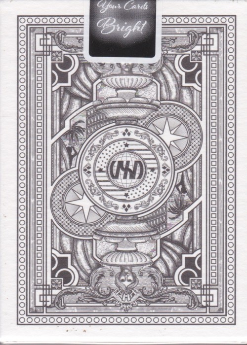 ONE-OF-A-KIND patented deck of playing cards, featuring security-type transparent holographic. Vegas Classic = 499 Units, Vegas Gold = 499 Units, Vegas Gold Metal = 499 Units, Vegas Ultraviolet = 499 Units, Vegas Ultraviolet Metal = 499 Units THE PATENTED PART: Diffractor Playing Cards incorporate transparent holographics that are normally only seen on security and identity documents, such as your passport or drivers licence. The concept behind the technology allows the addition of a further layer of eye-catching custom holographic artwork over and above the standard playing card ink artwork, via carefully aligned and detailed transparent holographic foils, stamped (with heat and pressure) into the card front and back faces. The technology took over 8 years to bring to market from first conception, due to the complexities of combining the techniques used in security document printing with the traditional characteristics required of a deck of cards (such as texture, slip, snap and weight). All these key characteristics of a quality deck of cards have been painstakingly maintained and are un-compromised. Full Deck Scan: https://cardscans.piwigo.com/index?/category/369-vegas_diffracters