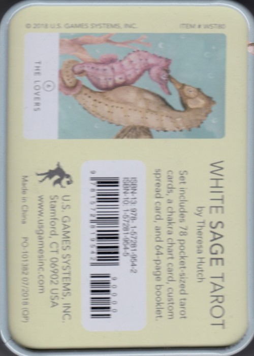 Seeking a way to balance the hyper-masculine energy in our culture with a strong and feminine deck, White Sage Tarot was born. It is unique and features traditional methods such as watercolor and gouache. White Sage Tarot is modern minimalist 78 card deck based in a classical model of tarot. The deck is infused with 7 Chakras (energy centers) colored ribbons as an additional way to read the deck.