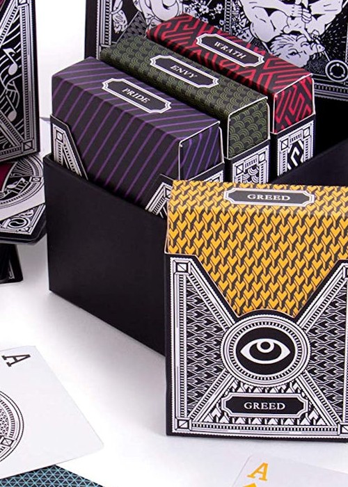 We’re all sinners, here. What’s your guilty pleasure? Are you always longing for something new, something shiny? Do you live to be the envy of the party? No matter your vice, the 7 Deadly Sins playing cards box set will be all the rage at your next Halloween gathering or poker game night. Now, you can visit the unsettling layers of the underworld without paying the carnal price, like Dante centuries before.