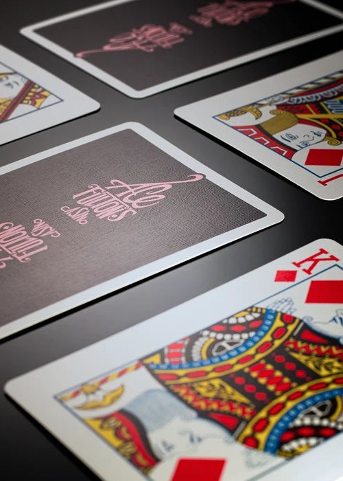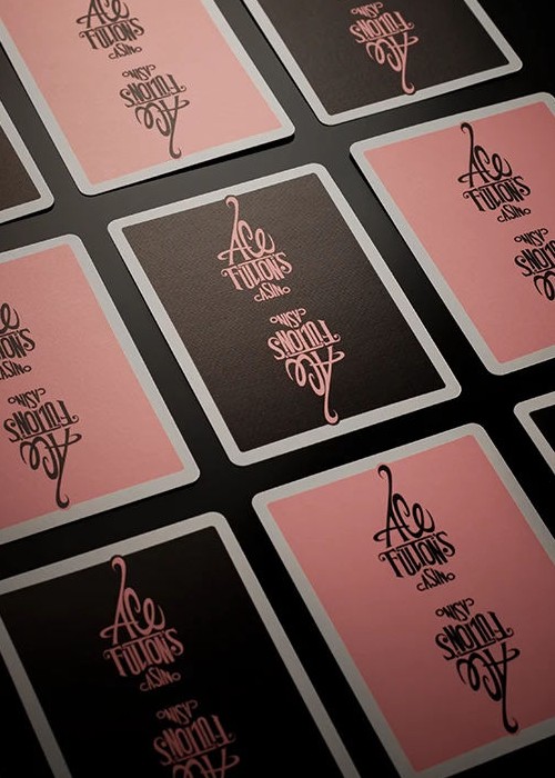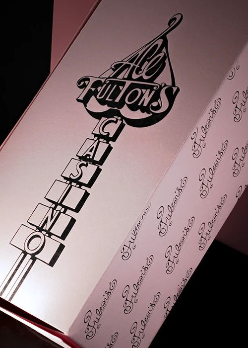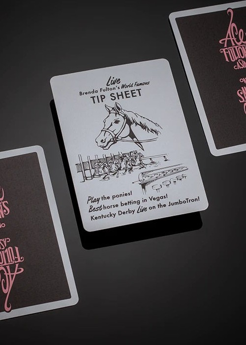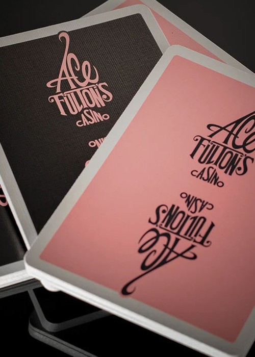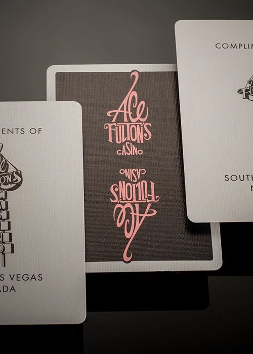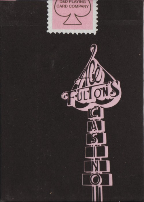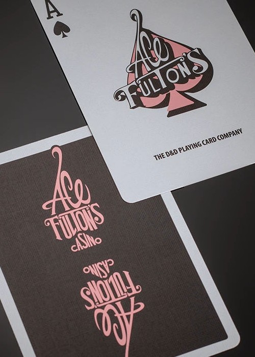 The highly collectible Ace Fulton’s Casino playing cards in an all-new black and pink colorway. This new edition to the series features the original enlarged logo back design, Arrco®-style court cards, a new ace of spades and matching marquee jokers. Inspired by vintage casino playing cards, the Ace Fulton’s Casino playing cards combine a retro style with a modern stock and finish. Printed by the U.S. Playing Card Co. on D&D’s trademark thin stock preferred by cardists. Housed inside a premium letterpress-printed tuck box.