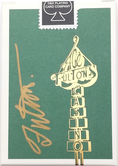 Last printed in 2012, the highly sought after Ace Fulton’s Casino playing cards are back in print. For the debut re-release, we’re offering a limited edition green and gold colorway. This new edition to the franchise includes an updated back design, Arrco® style court cards, custom ace of spades and jokers along with a tip sheet and invite to Aces High Poker Lounge* Inspired by vintage playing cards from casino’s like Jerry’s Nugget, the Ace Fulton’s Casino playing cards combine a retro style with a modern stock and finish. Printed by the US Playing Card Co. on our trademark thin-stock preferred by cardists. Housed inside a premium foil-stamped tuck box.