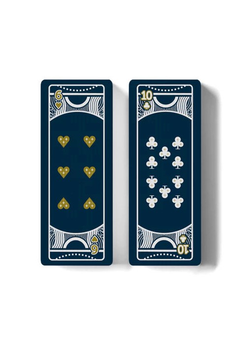 Custom pressed tuck case printed with premium blue uncoated paper and white and gold hot foil stamping