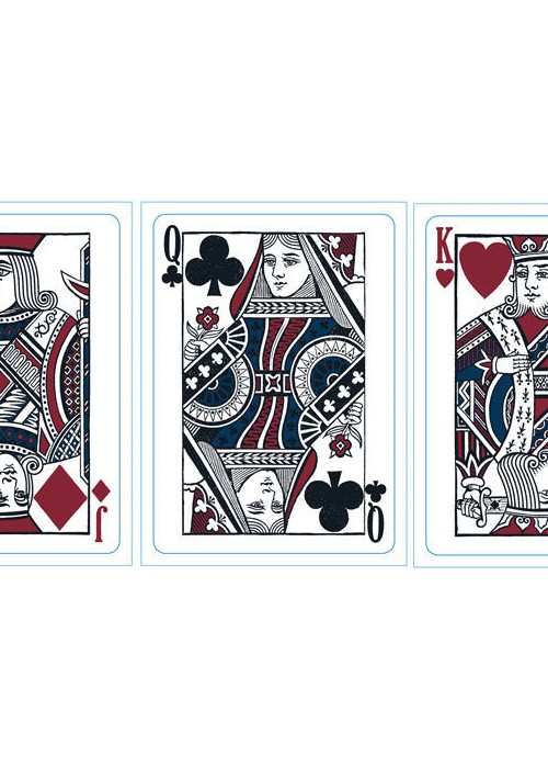 This deck will feature the new set of Kings Wild Standard Vintage Courts. This court set was originally developed for the Tigers but I have evolved it even further from the courts used in the Standard Tigers deck to what you see below. This is the same court set featured in the Thoroughbreds deck, but it will have a Red, White, and Blue color theme in the Americana.