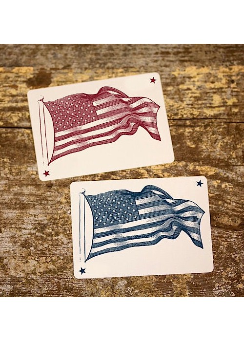 The Kings Wild Americanas sports a red, white, and patriotic blue colorway with custom card back reminiscent of the Tally-Ho circle back, Ace Spades and Jokers. The court cards are Kings Wild Standards and feature the same color scheme as the tuck and card backs. Definitely a beautiful deck for any table game with friends and family.