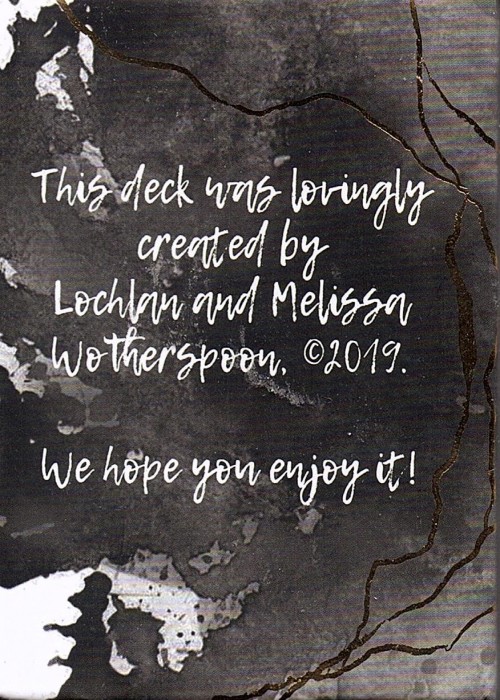 A gorgeous, 37-card (plus title card) poker-sized deck (a little larger than traditional Petit Lenormand but still small enough to do a Grand Tableau) Beautiful 350 gsm matte art paper card stock with gold gilded edges to complement the gold foil veins running throughout the cards (they will not be yellow – these images are just to give you an idea!) A sturdy, fully illustrated book-style box with magnetic closure for easy opening A little white book that is 50-pages, and which includes some helpful tips, spread ideas, and interpretation for each card
