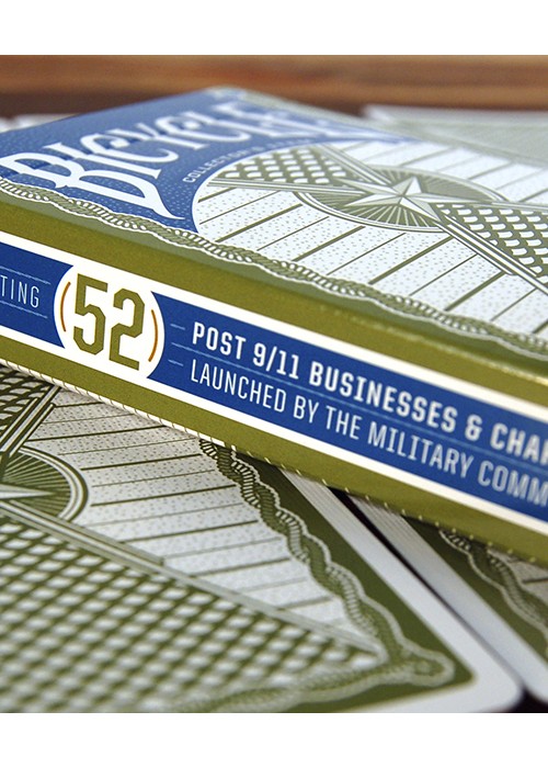 Deck of 52 Businesses & Charities launched by the Military Community The Bicycle® Frontline Leaders, Collector’s Playing Cards reveal how the military community is stepping up to the frontlines at home from Main Street to Wall Street. This deck is the first of its’ kind compilation, demonstrating how the post 9/11 military community is making an undeniable impact across industries. *Each of the businesses featured will benefit from the proceeds of this deck. As a spin-off from the 2003 Iraqi Most Wanted Playing Cards, the Post 9/11 Frontline Leaders Deck of 52 flips the script and highlights the Military Community. Each card represents a post-9/11 veteran owned business or veteran founded charity. Each card represents a deeper narrative about the post 9/11 military community—stories about grit, determination, passion, compassion, innovation, and leadership. Created by Marjorie K. Eastman, author of The Frontline Generation. The 52 organizations selected for the 2019 Frontline Leaders Bicycle Collector’s Item Deck represent how the post 9/11 military community is taking care of each other, our communities, and rising to opportunities and challenges here at home. These cards are connections to deployments and the home front, and, moreover, offer moments of pain, inspiration, and then purpose. Every branch of service is represented in this deck, along with family members and Gold Star Families. The Frontline Leaders Deck of 52 is proudly printed in the USA on premium Bicycle brand card stock with their classic, air cushion finish by the US Playing Card Company for ease of shuffling and optimal performance. Original and exclusive artistry inspired by U.S. Marine Corps Veteran Richard Casper, Founder of CreatiVets: Intertwined Ropes: Representing the two main conflicts, Iraq & Afghanistan Helmets: Richard’s signature trademark, repeating pattern emulates the curve line known in military map symbology as a FLOT (Forward Line of Troops) Star: 5 points for the five service branches, also triggering sentiment for the American flag and military traditions of blue and gold star families Lines: Each horizontal represents a year in the ongoing Global War on Terror Hourglass or Fields of Fire: Filled, timeless, different directions Color: One color stands for less than 1% that have worn a uniform since 9/11 Center Circle with Propeller: Design inspiration from Bicycle’s WWII Spotter Deck Printed on premium Bicycle® brand card stock Classic Air-Cushion Finish® for ease of shuffling and optimum performance Made in USA