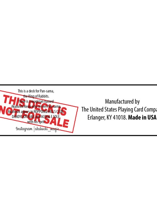 Japanese magician Kenji Akahoshi made the first ever Japan crowdfunding deck: Pan-sama. The deck base on his pet: Bread the rabbit (Bread in Japan is Pan), so here is the Pan-sama deck. Limited 144 printed, the deck will never been sold outside, the only way to get from the creator is via crowdfunding web in limited time. Custom face of numbers cards and Jokers