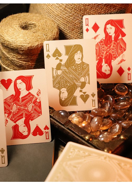 The Dong son culture inspired Corona Playing Cards with their circles, triangles, Viet birds, deers,… on Ngoc Lu and Dong Son bronze drums. The origin of Dong Son drum and Ngoc Lu drum is the name of two typical drum types for Dong Son Culture (700 BC – 100)in Vietnam. Many drums with huge sizes, well-proportioned, and their perfect shapes have shown a very high level of skill and art, especially the motifs described on drums, showing their activities of the people in the old time, expressed many things in Vietnamese legends. Now let’s take a closer look at the back design of the card with fours Viet birds flying around the rhombus, the circles, triangles, deers,… you will see more about the characteristic details of Dong Son culture on it. Corona Playing Cards will be printed by Taiwan Playing Cards Company using the newest improved Vintage Stock and Legendary Finish. The suits in Corona Playing Cards are full-customized from the drum elements. The most different is Ace of Spades, the design is based on golden ratio. The design based on Golden Ratio We’ve also designed and customized court cards, classic but contemporary in nature. It doesn’t look like anything playing cards have seen before. No Bordereds, no current standard faces, and yes, special with some new weapons. The details of the tuck case will be embossed on all the sides and added some gold cold foil on the paper. People will see how luxury and classic, the beauty of golden foil with embossed had retained some of its elegance.