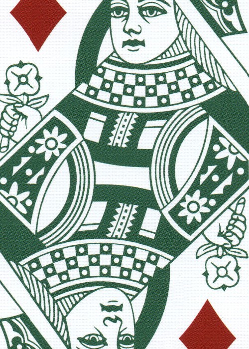 Note particularly the minimal geometric diamond shapes on the card backs, as well as their more defined look on the Ace of Spades and Jokers.