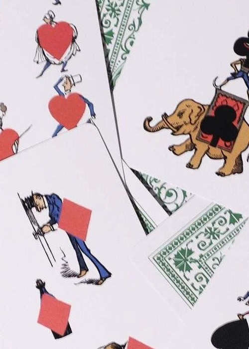 This reproduction deck was first printed in 1876 by F.H. Lowere. It is note worthy as it was the first transformation deck printed in the USA and also the first transformation deck to include a joker. The deck was recreated digitally from scratch with special thanks to Columbia University for providing high resolutions images from the original deck from the Albert Field playing card collection.