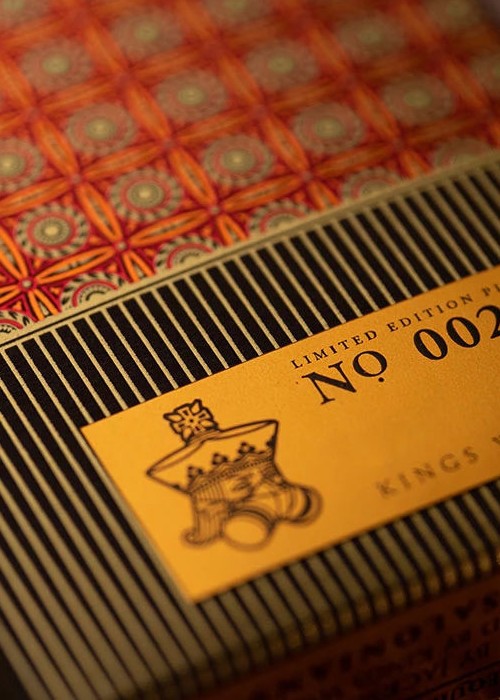 The Equinox I – 2019 Gilded Edition is a luxury reprint of the first deck of the Kings Wild Shorts Subscription service that launched a year ago in September. For the 2019 edition, both the card manufacturer and tuck case manufacturer were upgraded to EPCC (cards) and Clove St. Press (Tuck Case) to give the Equinox I the same luxurious fit and finish as the Equinox II deck had in March.