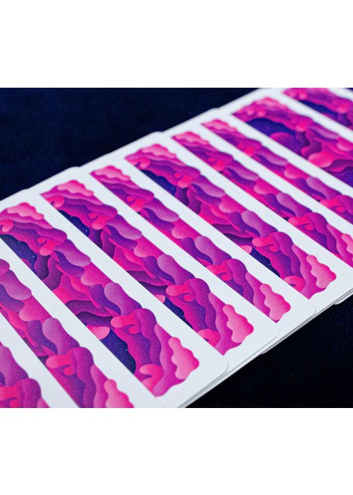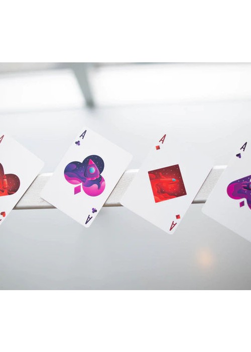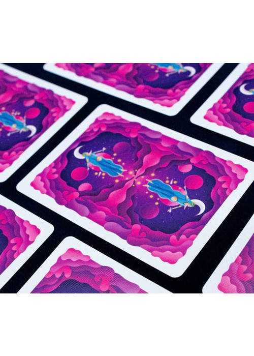 Have you ever dreamt of exploring planets far far away from our solar system? If you have ever wondered what it would be like to peacefully roam around magnificent unknown worlds, the Explorer playing cards are the right choice for you. This new deck takes you on a journey into the whimsical world of a planet on which the characters have just landed with their space shuttle. Immerse yourself into the calming purple hues, sit back, and enjoy the ride.