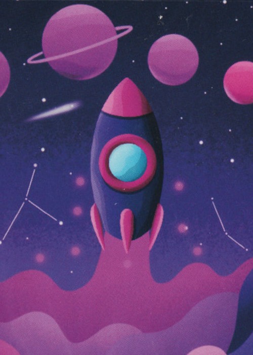 On first glance, the court cards consist of silhouettes of kings, queens and jacks occupying a bigger part of the cards. However, upon a closer look, each of the silhouettes is, in fact, a window into a different narrative. With each of the cards, you get to discover a new character and their thrilling adventure in the outer space. The court cards vary from the calming hues of purple into the fiery orange and red tones.