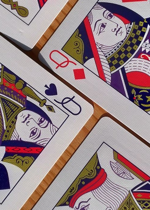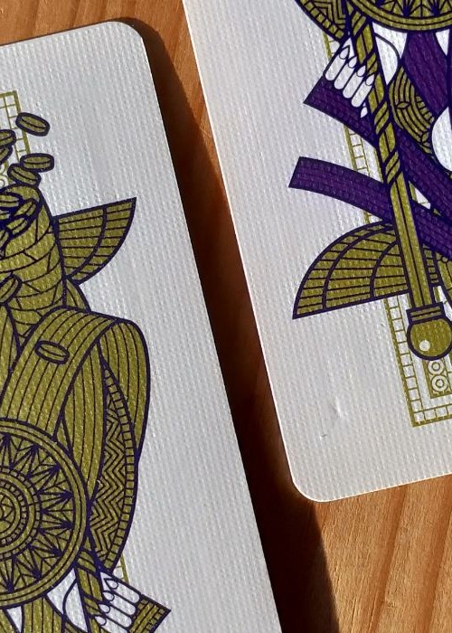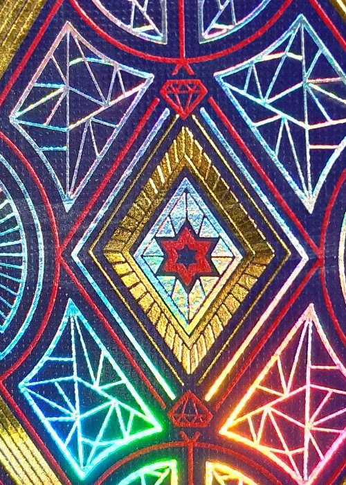 The Exquisite Fortuna was released during the 2019 52 Plus Joker Convention in Charlotte. It came as a surprise as Bill Kalush of Expert Playing Card Company introduced it as a collaboration with Giovanni Meroni of TWI (Thirdway Industries). The innovation of this deck is how three layers of hot foil were stamped onto the back design: (1) holographic foil, (2) gold foil, and (3) red foil. According to Kalush, the technique was developed in ten years’ time due to the difficulty of the hot foil precision: three plates individually stamped onto each card, making it extraordinarily difficult to line up. The downside of this is, of course, the several failures of the printing process and resulting in the low print run which is less than 500 decks available. However, this is an ultimate piece of innovation that would be cherished by hardcore collectors and is due to become one of the rarest and highly sought out decks in the future