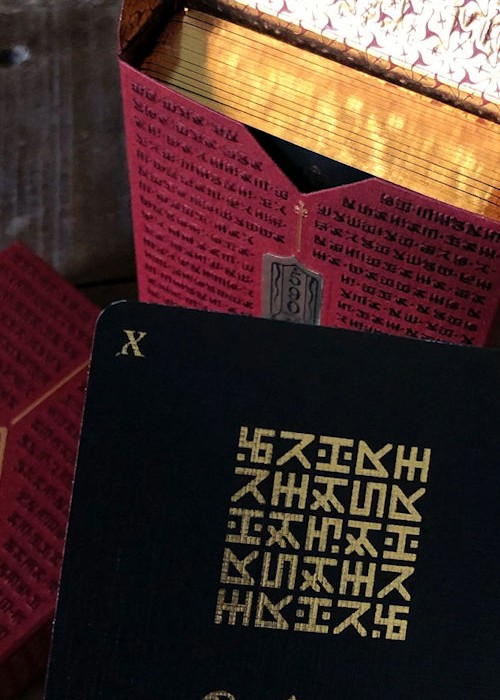 Room17 (or Room XVII) is a limited edition deck with numbered seal. The tuck-box is like a Rosetta Stone that you can decipher if you want to spend some time.