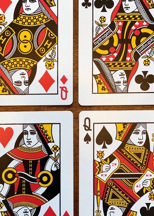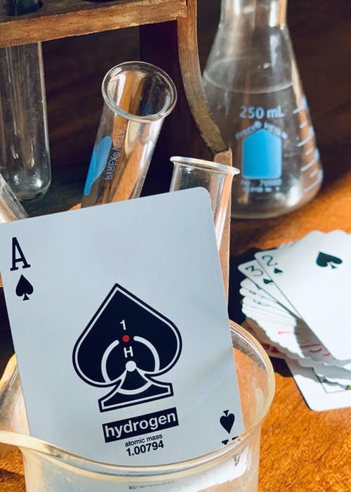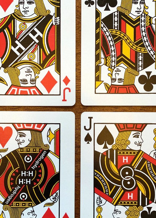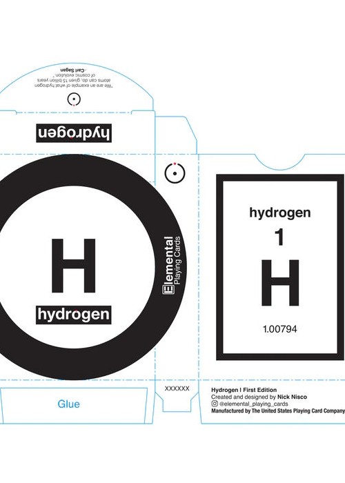Elemental Playing Cards exists to explore these similarities, starting with the first (and arguably most important) element from the periodic table: Hydrogen (H). Subsequent releases will showcase other elements individually.