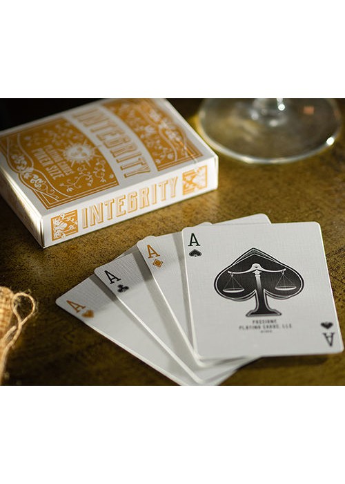 Integrity incorporates ethical concepts of rectitude and virtue in a deck of playing cards aimed at players, magicians and cardists.