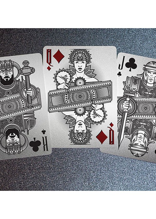 The Platinum Edition decks are printed by Cartamundi on the B9 Linen Finish with Silver Cold Foil on both the back and faces of the cards.