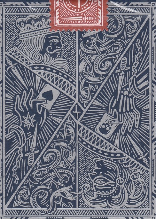 Second edition of the Joker and The Thief Deck. Key differences between the first versions include unique seals with perforation for each deck, premium dyed papers, hot stamped letter pressing for the foil and with a satin finish, more contrast added to each box, and USPCC as the printer.