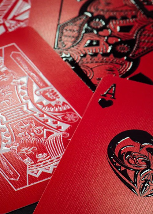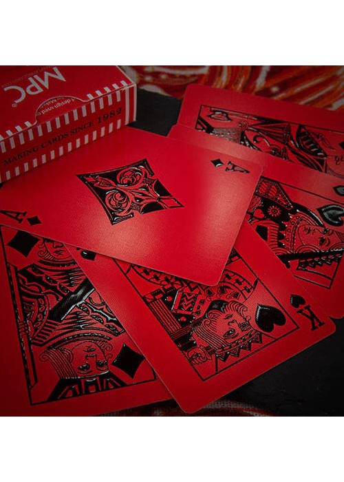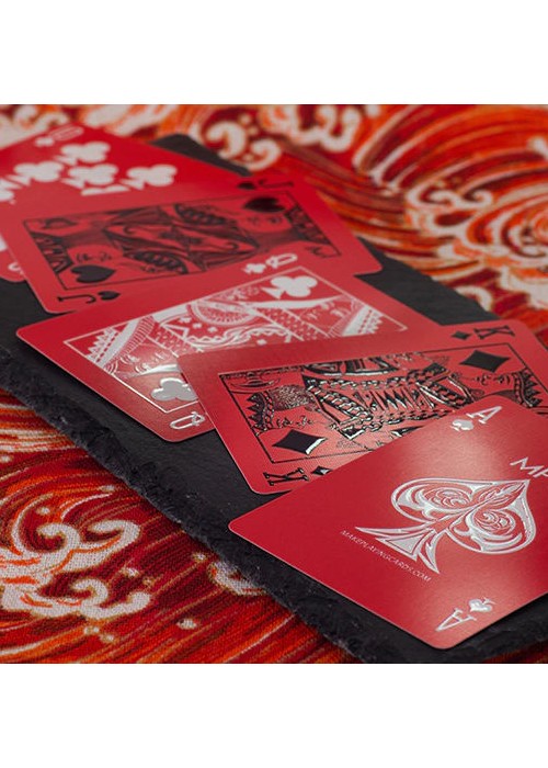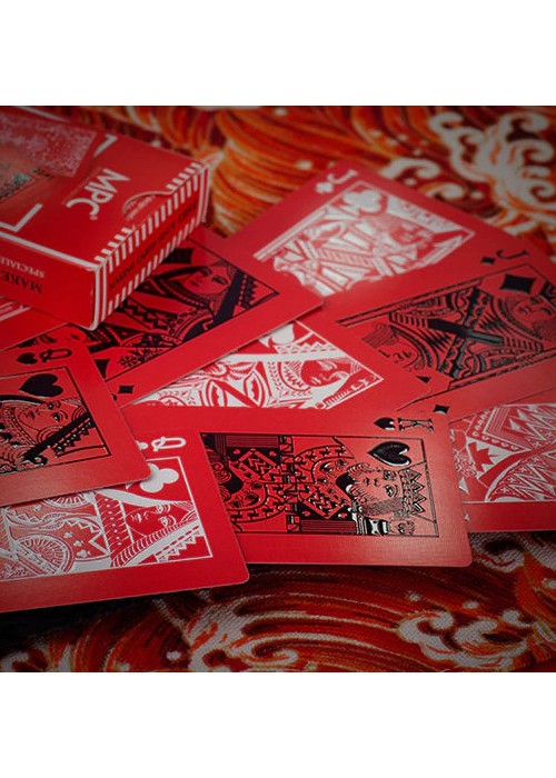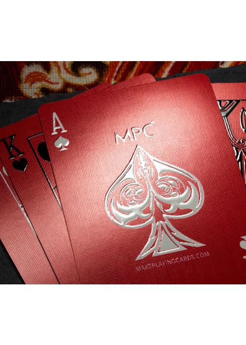 The Impressions series Playing Cards are designed and manufactured by MakePlayingCards.com (MPC®), a branded playing cards and card games manufacturing company with over 35 years history. With huge success from our previous Impressions series playing cards Kickstarter projects, we have not one but two very impressive additions to add to the highly-acclaimed range. The Rising Sun Ed. and the Aozora Ed., both of which are inspired by the colors of the amazingly-cultured country of Japan. We are hugely proud to introduce the Rising Sun and the Aozora decks to our world-renown Impressions Playing Cards series. Aptly named, these two new decks are inspired by Japan and have an underlying Japanese theme. We designed the two new decks with inspirations from Japan in mind. The Rising Sun Ed. is designed with inspirations drawn from the traditional colors on the Japanese flag which consists of a red circle in the center to represent the sun on a white background, often referred to as the “Rising Sun”. The Rising Sun deck is our main deck in this project as it features the most traditional and prominent colors of this amazing country. The playing cards bear a bright red background with contrasting black and white artwork. Funded through a Kickstarter campaign Full deck scan by macstrat @ https://cardscans.piwigo.com/index?/category/383-mpc_impressions_rising_sun