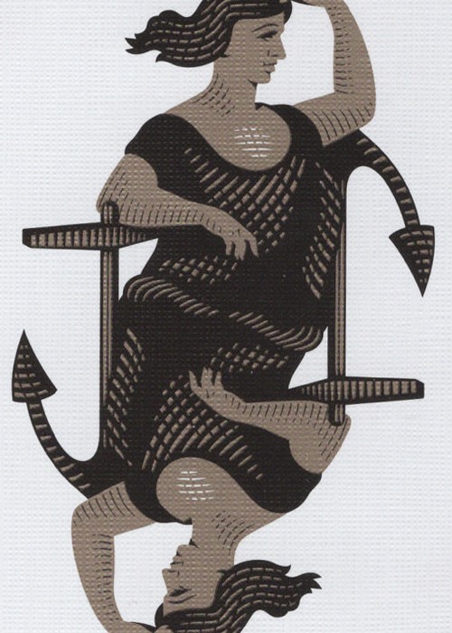 Don’t wait for the wind to change – adjust your sails. A new, nautical themed deck of premium playing cards – with intricate detail in every aspect of the design. Even the INSIDE of the box has a gold foil, optical illusion pattern – like a mirage on the distant horizon. Inspired by tales of sailors and their adventures. From leviathans beneath the waves to the battles above – mankind has unbreakable bonds to the sea. Navigators hearken back to those roots and celebrate our nautical heritage. Take the wheel and set sail. Featuring fully custom design, including playing card backs, aces, jokers, and court cards. Made in the USA on FSC-certified paper derived from sustainable forests, starch-based laminates, and vegetable-based inks. Full deck scan by macstrat @ https://cardscans.piwigo.com/index?/category/235-navigators