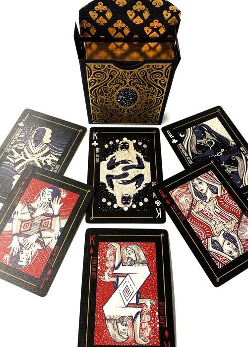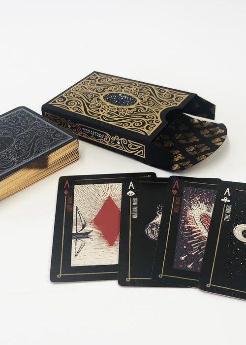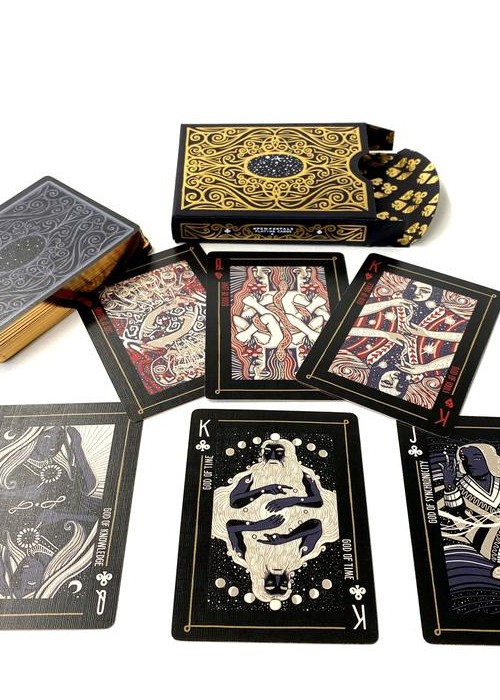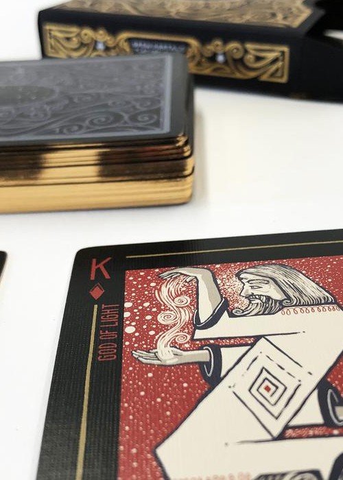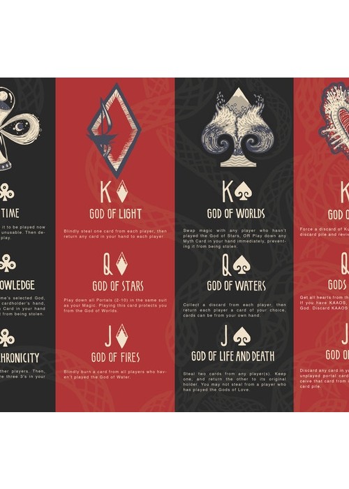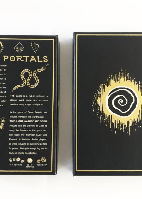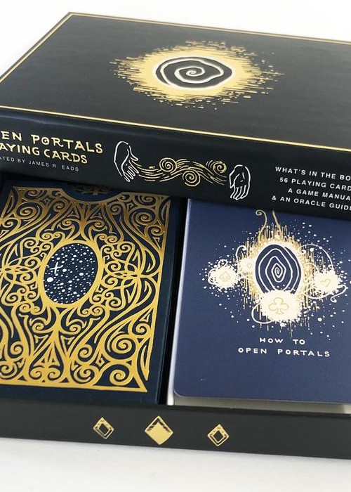 Open Portals is a fully illustrated poker-sized playing card deck by James R. Eads and can be used to play any card game. This deck is unique because each card has its own image and story. Within the box are TWO GUIDES that tell the myth of Open Portals and explain how to use the deck as both an Oracle Deck and a new energetic game of strategy and luck. The Game is a hybrid between a classic card game and a more contemporary magic card game. In the game of Open Portals, four players represent the four Magics: TIME, LIGHT, NATURE AND SPIRIT Players use the powers of Gods to sway the balance of the game and call upon the Mythical Kuzo and Kaaos to tip the fates of other players, all while focusing on collecting portals for points. Timing is everything in this game of infinite possibilities!