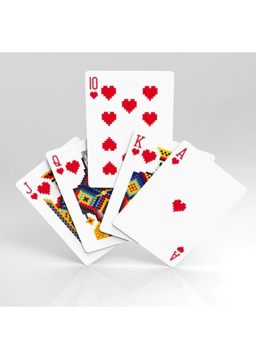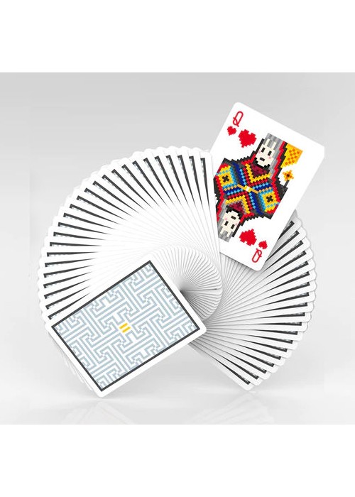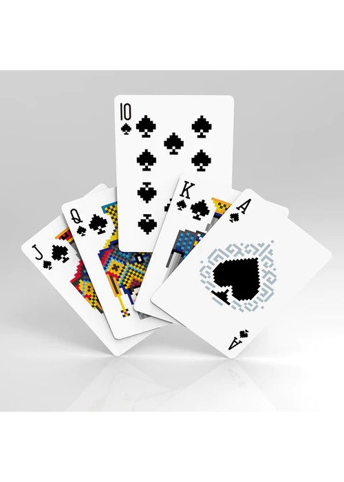 Special edition in White: Printed by USPCC Standard poker size Air Cushion Finish High quality paper All 56 cards have been modified into pixel style Silver and white color matching Other features include different designs on the Aces and Jokers