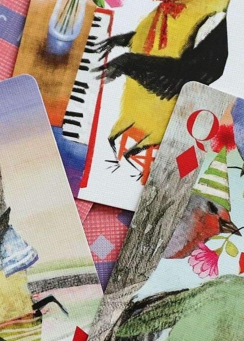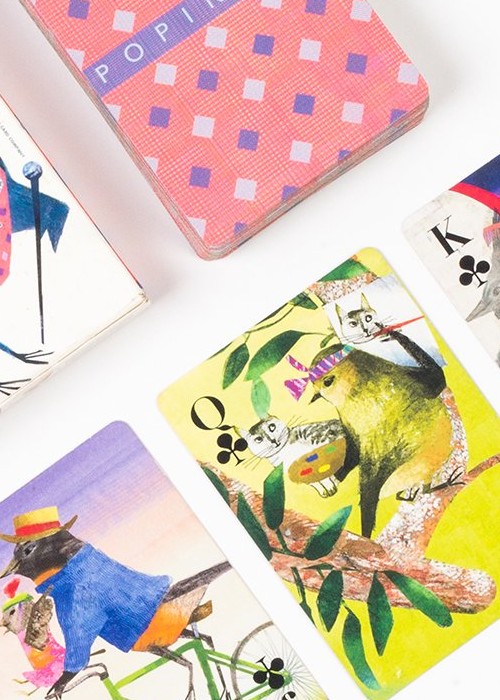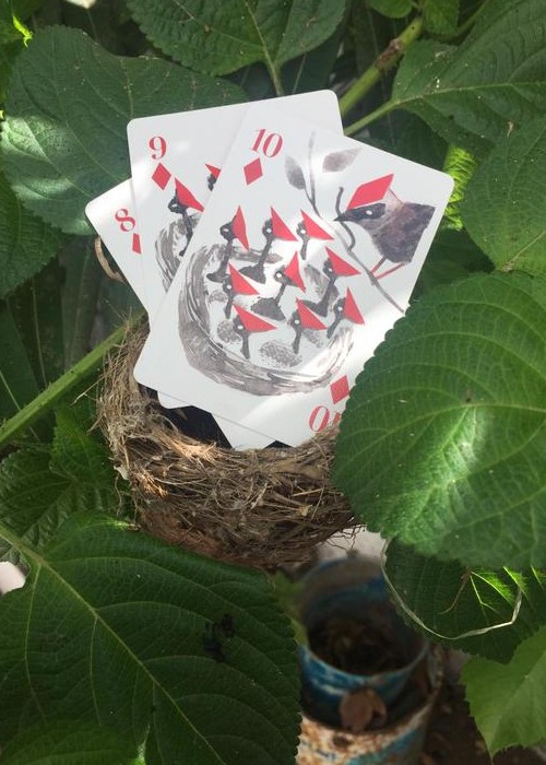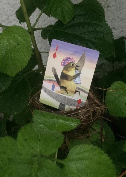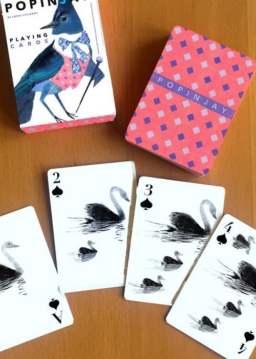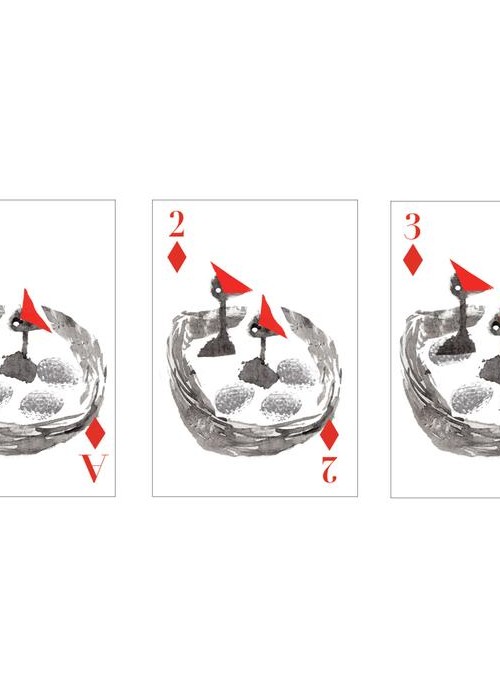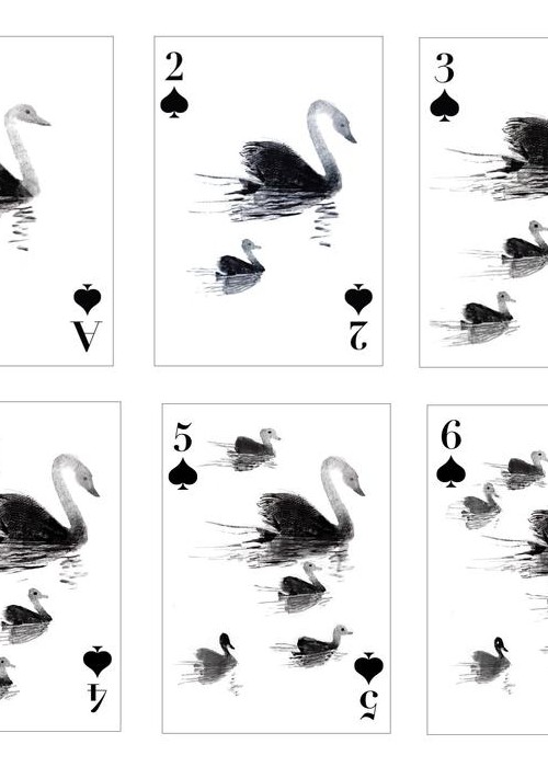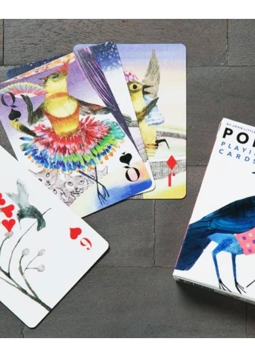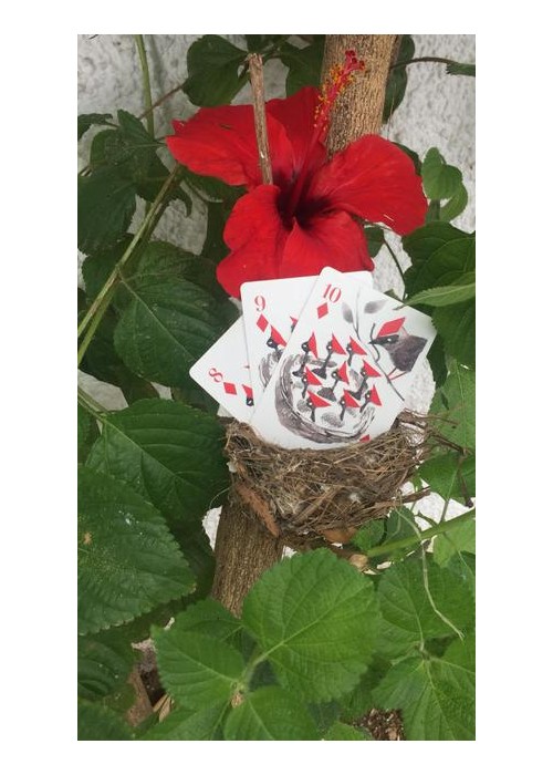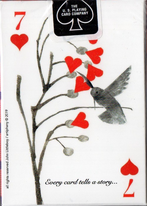 Popinjay, Artiphany’s newest deck of cards, is a delightful foray into the elevated world of backyard birds. Each suite is a window into avian activities: owls gaze out through club-shaped peepers and into our very soul; hummingbirds flitter back and forth, their wings blurred and their beaks deep in the nectar of two-petalled blooms; stellar Jay’s prance; swans glide. For all nature lovers, bird watchers, and card players. Full Borderless (Full Bleed), semi-transformation. Full Deck Scan: https://cardscans.piwigo.com/index?/category/245-popinjay