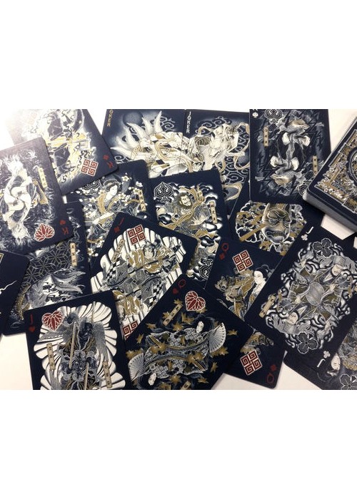 In Kitsune, we continue to translate and transform the traditional Japanese tattoo art form of Wabori into playing card style, retaining as well as enhancing many of the interesting and delightful features we had in Sumi Playing Cards. The focus of Kitsune centers around the fox spirit, a staple in Japanese folklore. We scoured many different sources of folktales, stories and myths about fox spirits and selected a few well-known ones as sources of inspiration for the characters in the court cards. Kistune continues to serve as a homage to Wabori and faithfully represents the visual nuances and quality that is the hallmark of Japanese traditional tattoo once again, creating a visual playing card masterpiece like no other, a masterpiece that weaves fantastical stories of begone time with modern playing card aesthetics.
