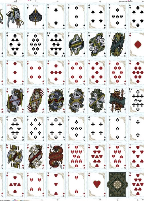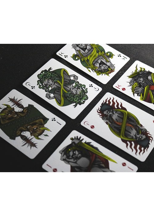 All Courts, Aces, Jokers and pips are completely redesigned with a Greek mythology theme.