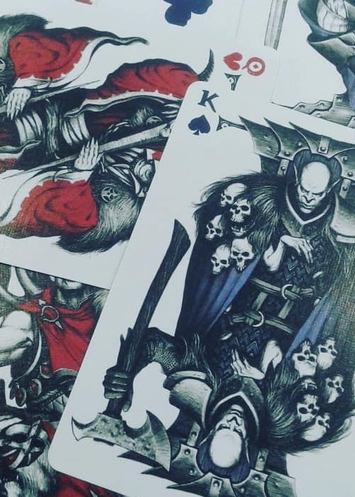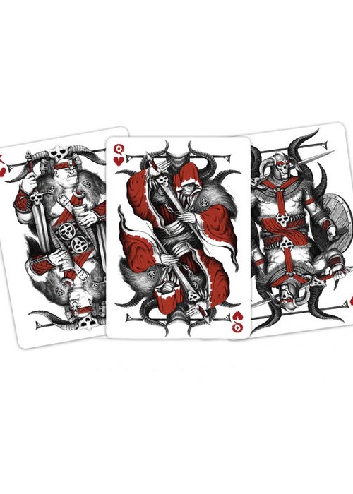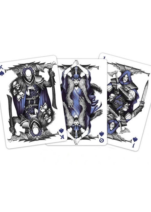 Welcome to a dark medieval realm ruled by the mighty Varg; orc-like beings fueled by glorious combat, powerful magics, and endless greed. This deck of playing cards features beautiful and detailed illustrations of several mighty figures that rule these vicious lands.