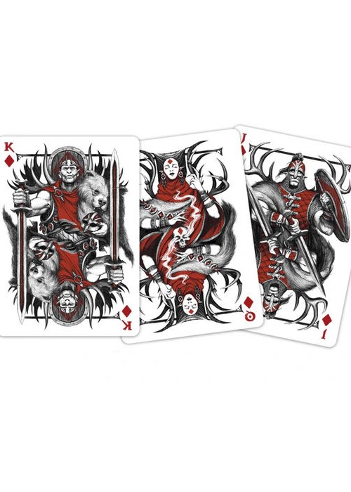 The Varg Clans: Illustrated Playing Cards is more than just an art deck. Each Royal character has a backstory. Some clans desire peace, and others hunger for war. Some long for love, and others seethe with hatred. Some lust after power, and others just want to survive. They all have one thing in common — they are all preparing for war… Full Deck Scan: https://cardscans.piwigo.com/index?/category/192-varg_clans