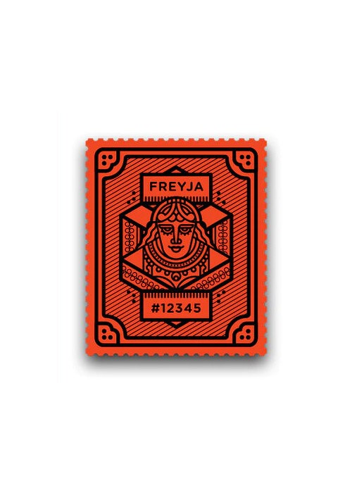 Deck of Freyja is made of black soft touch tuck box, embossed, with special Merlot Red foil and selective varnish applied, to outline design elements. Freyja deck’s cards are designed in silver and gold Metallic inks, with black background: