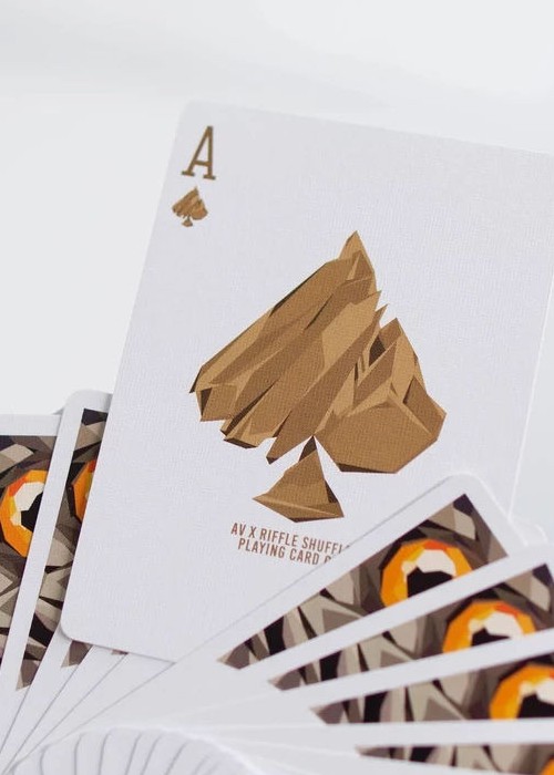 Printed by United States Playing Card Company with Bee Casino Stock. Limited Edition of 3000 Decks. Designed by Adrian Valenzuela. Produced by Riffle Shuffle Playing Card Co.