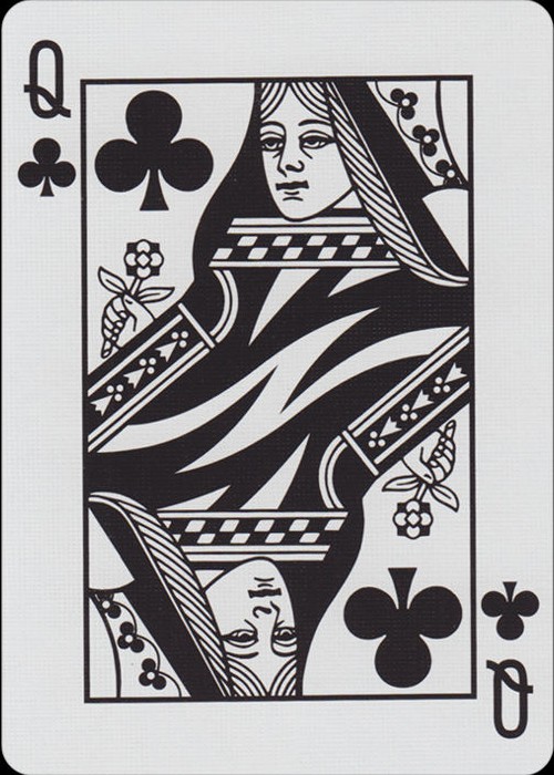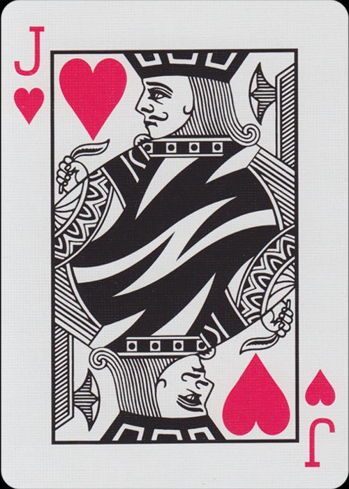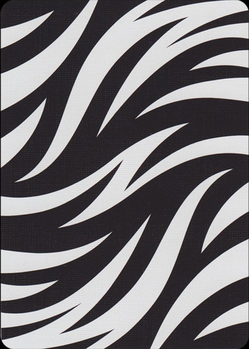 The Borderless (Full Bleed) back design was created to enhance the flow of all flourishes, fans, and spreads by creating a seamless pattern. The face cards have been simplified to match the backs with only two colors used throughout the deck.