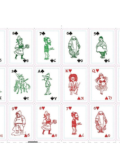 These cards were printed by me on a hand operated letterpress printing press, an Old Style Pilot Press made around 1920. I still have some of the limited edition of one hundred decks available here.