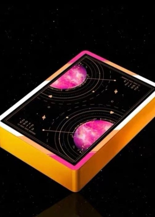 Pink Gilded has Pink letters on the custom seal, Gold Gilded has Gold letters. Limited edition of 399, numbered custom seal. The 2012VP133 Playing Cards series with the theme of planets in the galaxy, paints us the beauty of the stars. This is the first deck in this series. The card was inspired by the discovery of pink dwarf planets by American astronomers: 2012VP113. And the biggest feature of the design is that its face cards have no color or points, each pattern and detail are in order to improve the visual effect of cardistry. Let me say this again, there are no Courts, no Numbers, only Jokers.