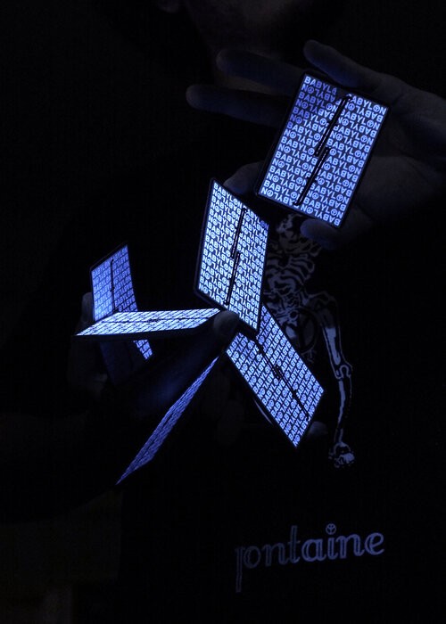 BABYLON x FONTAINE is the 30th Fontaine deck. The deck is UV ACTIVATED – the back design of every card, and the card box, has an invisible pattern, only appearing when under UV light. This is Fontaine collaboration with Babylon fashion brand