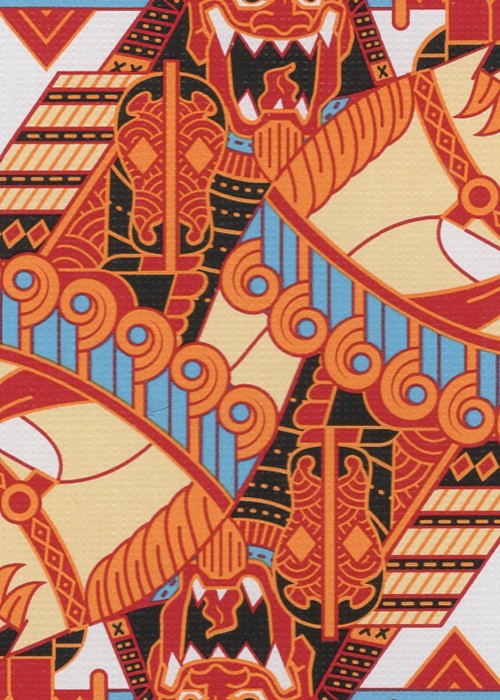 Musha & Goketsu revolves around the intricate and colourful visual elements of Musha-e, traditional Japanese woodblock printing featuring portrayals of warrior figures, and the equally colourful characters of Suikoden, a tale of a band of Robin Hood-esque hero bandits. Full Deck Scan: https://cardscans.piwigo.com/index?/category/483-goketsu_regular