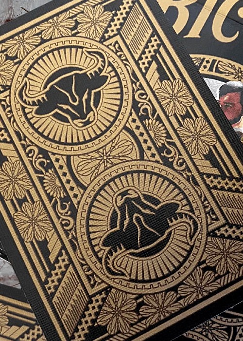 Live the essence of the great bullfights through these decks inspired by the popular festival born in Spain. The big bulls in the aces jump into the ring and fight for their survival against the brave toreadors armed with capes, spears and swords on the court cards or the picadors in the jokers. Metallic gold and silver inks help show off the majestic costumes and intricate design elements.