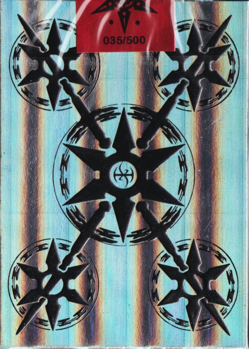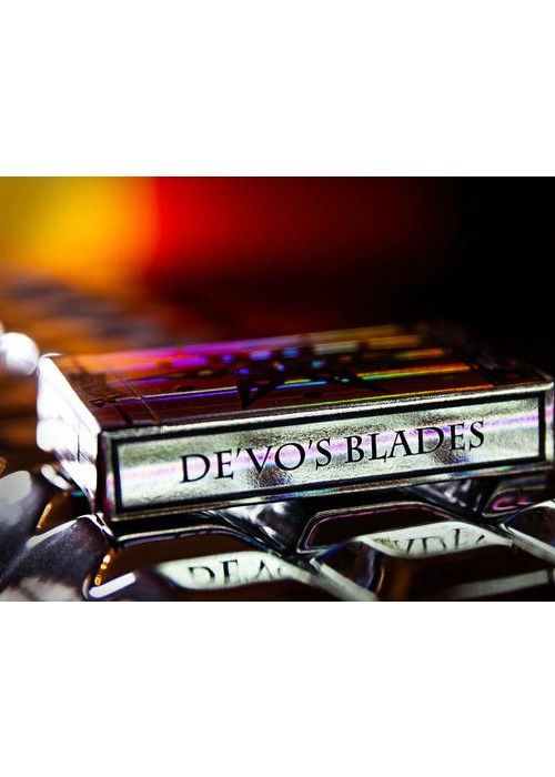 This AMAZING deck is the first in the De’vo line up to feature the very expensive MetalLuxe™ technology on the backs giving it a foil look without compromising handling. This set comes with 2 of the same Silver MetalLuxe™ backed decks in 2 different colored Holo foil hand signed boxes with numbered seals, AND an amazing 1.75 numbered collector’s coin! This is the most important deck the history of De’vo’s playing cards and therefore gets the royal treatment! De’vo’s LEGENDARY Blades Deck was his very first deck created in 2010 and has sold tens of thousands copies around the world. This is your chance to be one of only 460 people to be able to pick up the entire 10th Anniversary numbered/signed set here on Kickstarter! WILL YOU BE ONE OF THE LUCKY 460?