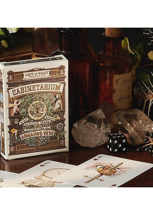 Art of Play is proud to present a shuffled gallery of surrealist fantasy, unlike any other deck of playing cards the world has ever seen. Cabinetarium is a collection of 55 original works hand-drawn by award-winning illustrator Armando Veve.