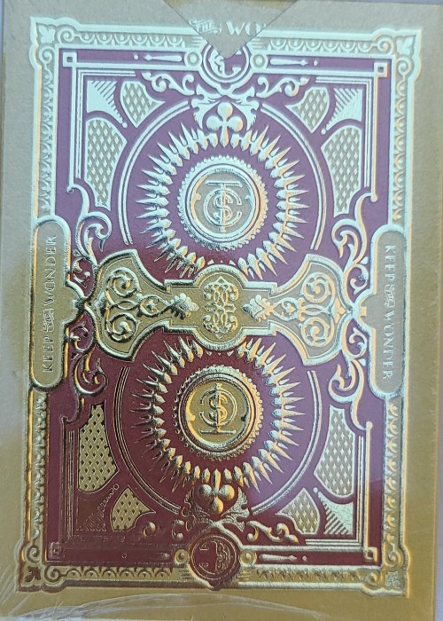 Printed by Oath Playing Cards in Greece, has the same stock and faces as the Charmers red deck (German 310gsm casino grade stock & Maestro V2 finish) BUT features gilded edges, becoming the FIRST ever Gilded deck by Lotrek: