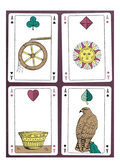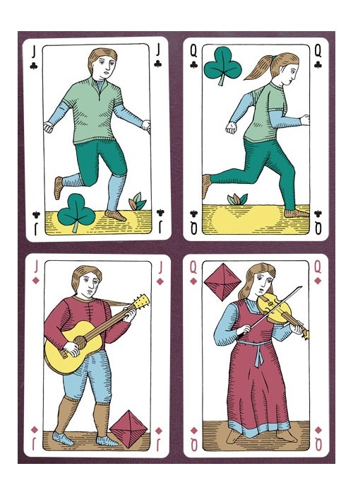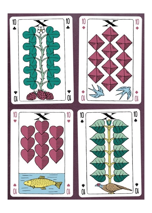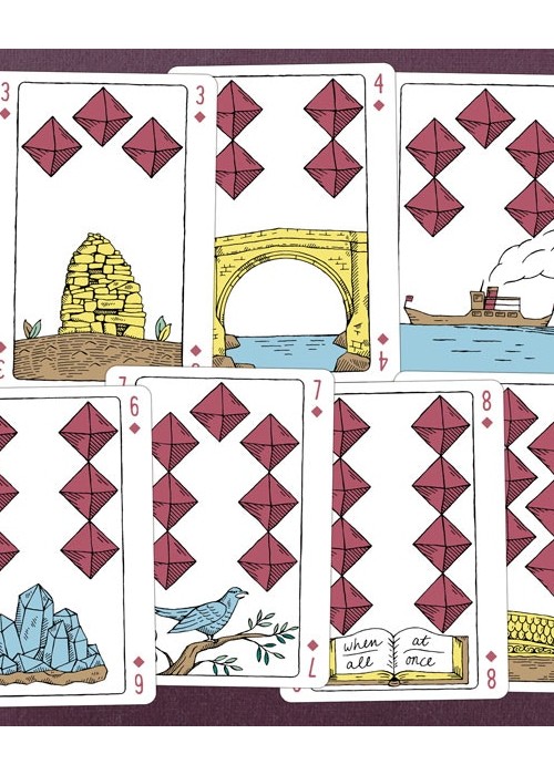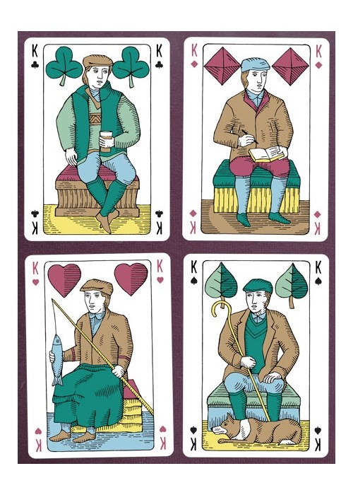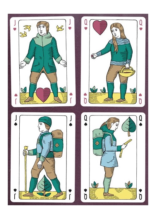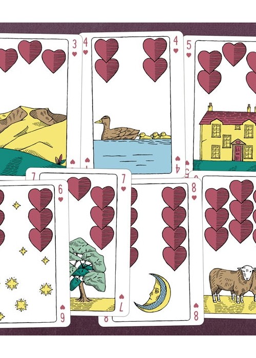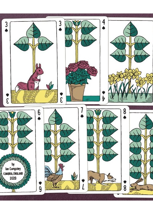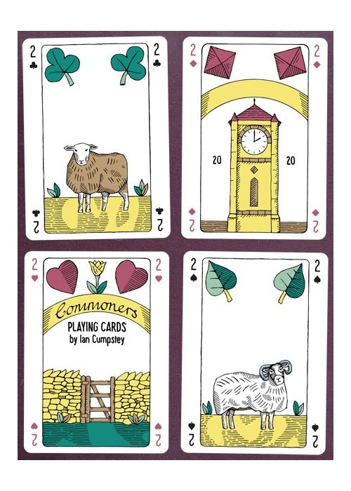 The style and appearance of these cards are based on the traditional German-suited playing cards that have been used in parts of Europe for hundreds of years, and are still used today. However, the Commoners cards are drawn with the typical international standard (French) suits … so keen observers of my previous work will spot that this is in a similar spirit to my Viceroys and Pike and Clover cards. Much of the artwork is also inspired by my local landscape and surroundings in Cumbria in the north of England