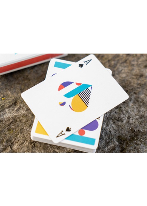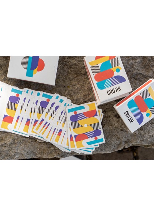 A mixture of Bauhaus, geometry, and colors. Lines, blocks, circles, and sharp edges come together to create the one-of-a-kind back design on Crujir Playing Cards.