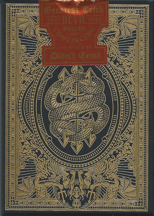 You can either decide to take the design at its cover (and don’t get us wrong, it is beautiful), or you can allow yourself to be drawn closer, and spend some time discovering the plethora of hidden details lurking in the corners of the illustrations. In fact, there are different forms of the devil’s outline scattered around the faces of the decks, and it requires some close inspection to reveal them. You can say that the Devil is in the details, but the closer you look, the less you see…