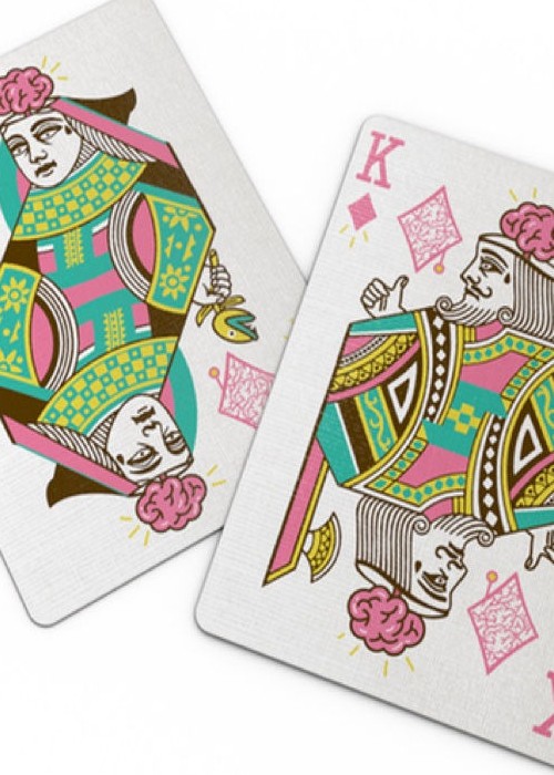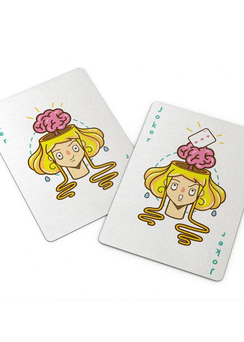 We have 2 design variations – the Curiosity deck with a standard tuck case from USPCC and the Imagination deck with beautiful, custom, letterpressed tuck case in premium white cotton paper. Both design variations will not be reprinted.